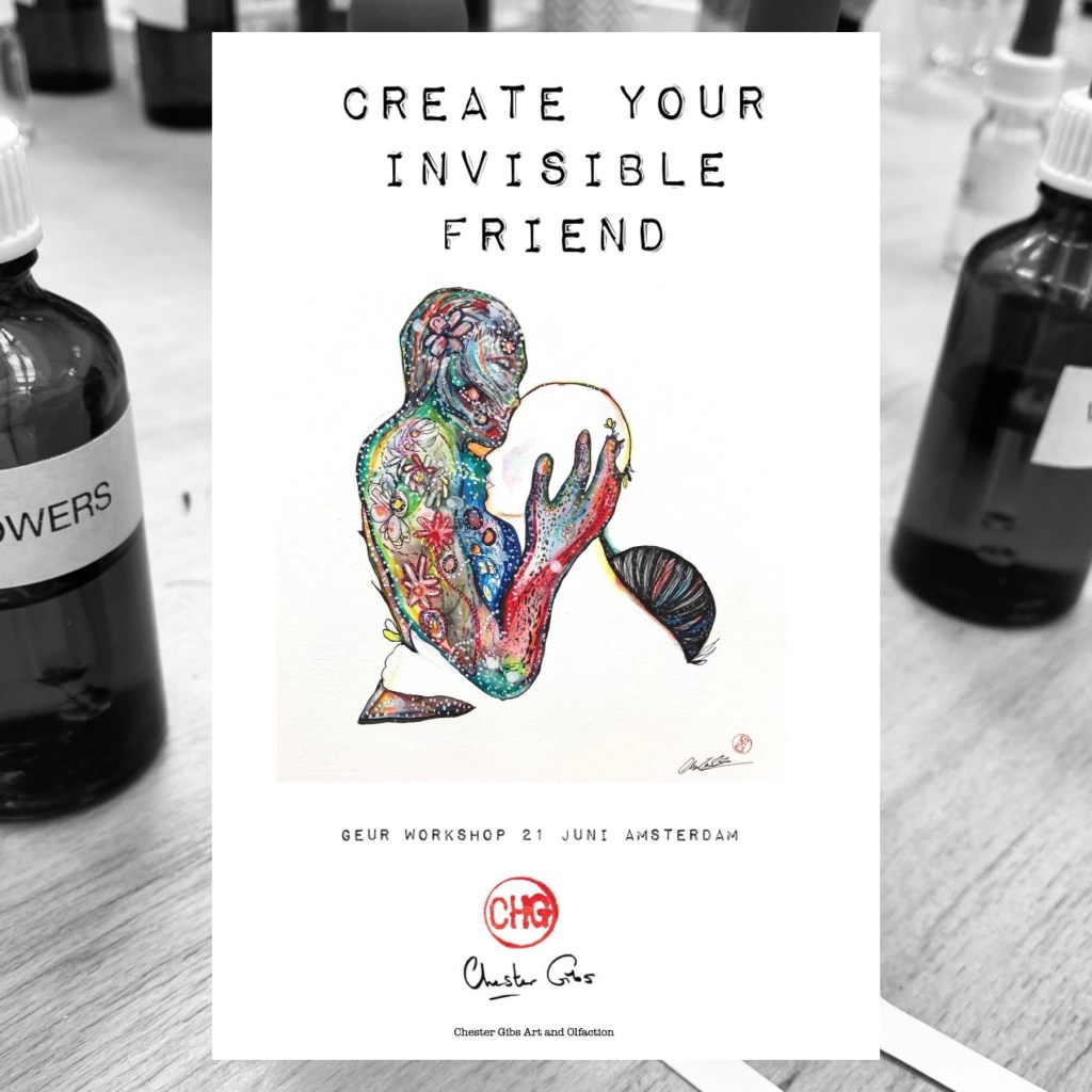 Invisible Friend is an art presentation I created that consists of 3 drawings, 3 scent compositions and 1 scent workshop. It was on display at the independent group exhibit PoP-Up organized by Amsterdam art collective Open-Oost at the Dokzaal. The Dokzaal is located in the heart of Amsterdam. This former church hall was built in 1872 and has, among other things, served as a printing house. Later it was used as a gymnasium of a technical school. In 2010 the hall was completely renovated to its former glory