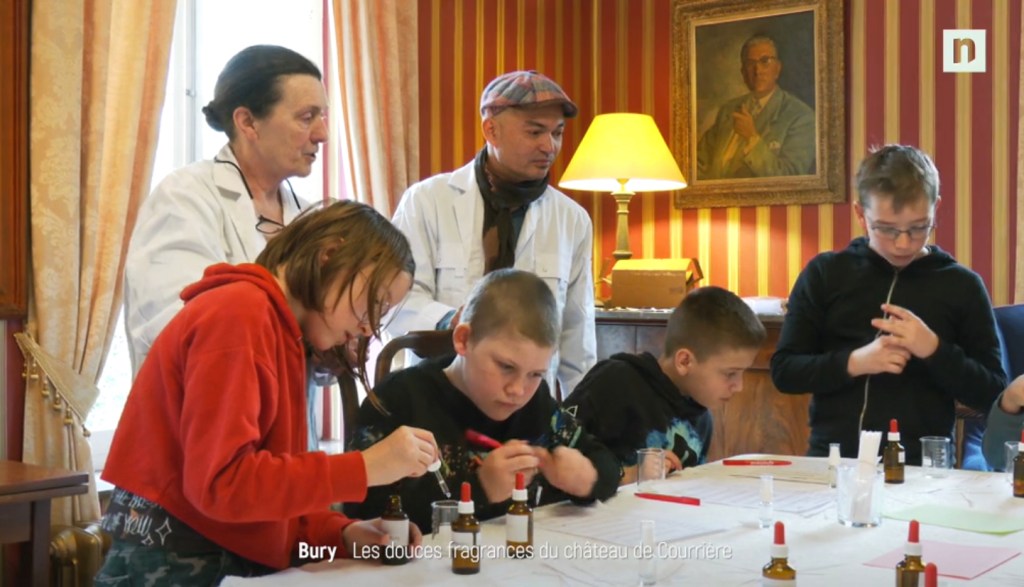 A l’occasion de la Journée Internationale du Parfum le 21 mars 2024, les enfants de l’école primaire de Pipaix sont venus visiter le château pour un atelier très particulier présenté par Monique Douchet et moi-même ; Les petits parfumeurs allaient sentir le Parfum d’intérieur Bouquet Bury de Castle que j’ai créé il y a 2 ans. Après avoir senti le parfum, les enfants ont reçu 15 matières premières à sentir et ils ont eu pour tâche d’écouter attentivement ce que les odeurs leur faisaient ressentir. A l’aide de 15 matières brutes, les enfants étaient invités à remixer le parfum à leur guise.