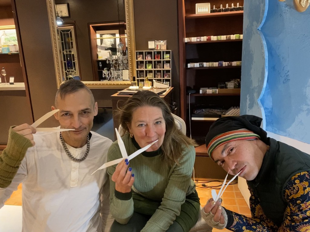 Christophe, Tanja and I during a midnight smelling session.